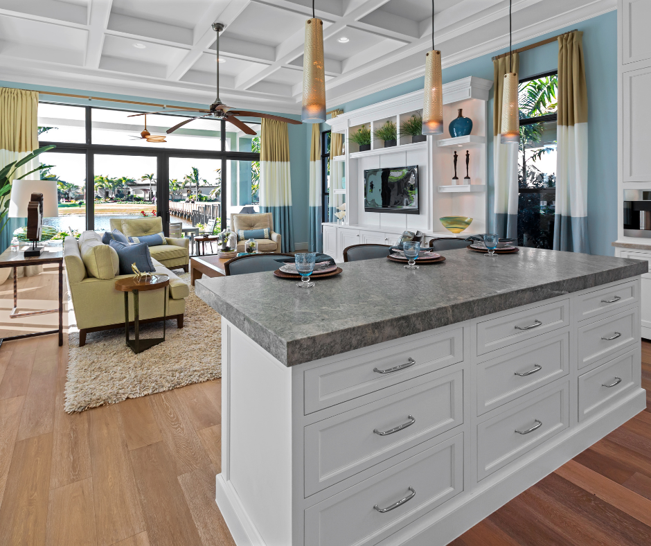 Open Concept Layouts: Breaking down walls to create open, airy spaces that seamlessly integrate the kitchen with the rest of the home.